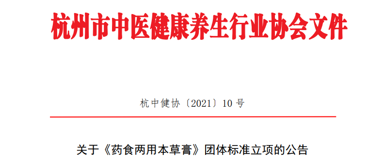根据《团体标准管理规定》及《杭州市中医健康养生行业协会团体标准管理办法》的规定,由杭州胡庆余堂天然食品有限公司牵头申报的《药食两用本草膏》团体标准,经杭州市中医健康养生行业协会组织专家于2021年11月30日进行立项评审,所申报的团体标准符合立项条件,获批立项。