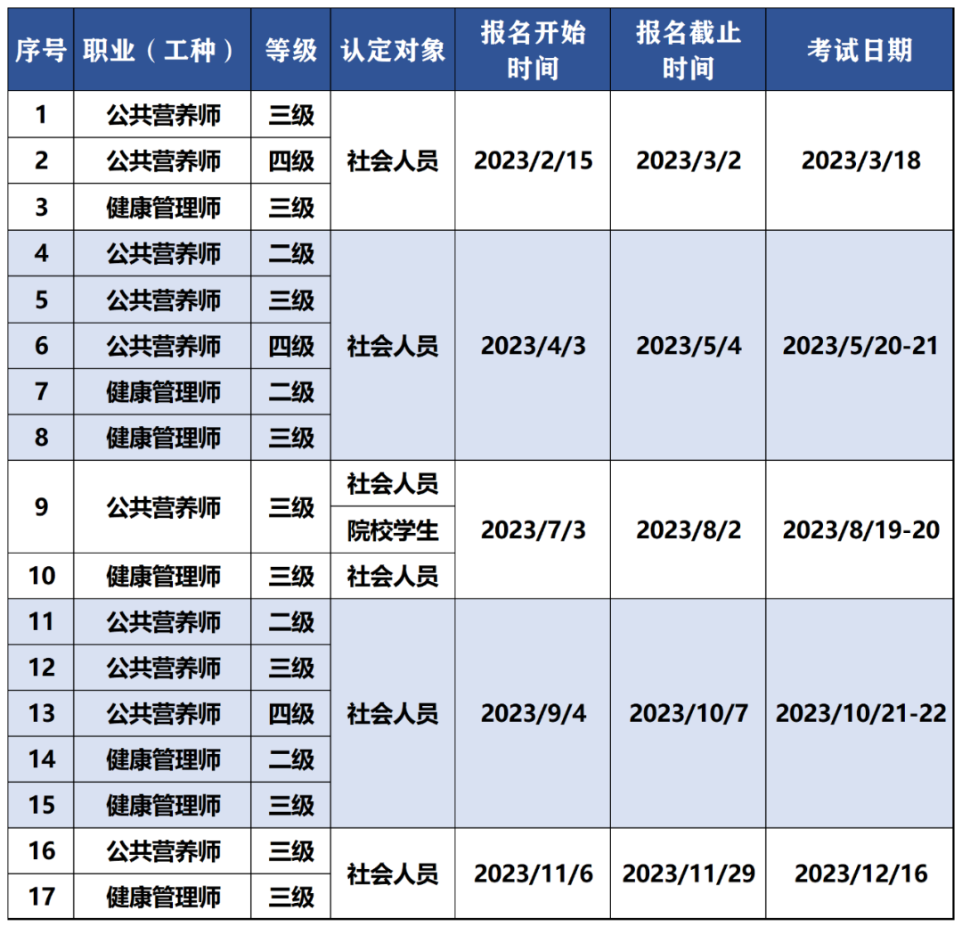健康管理师 公共营养师 | 三级(高级) | 3月、5月、8月、10月、12月 |